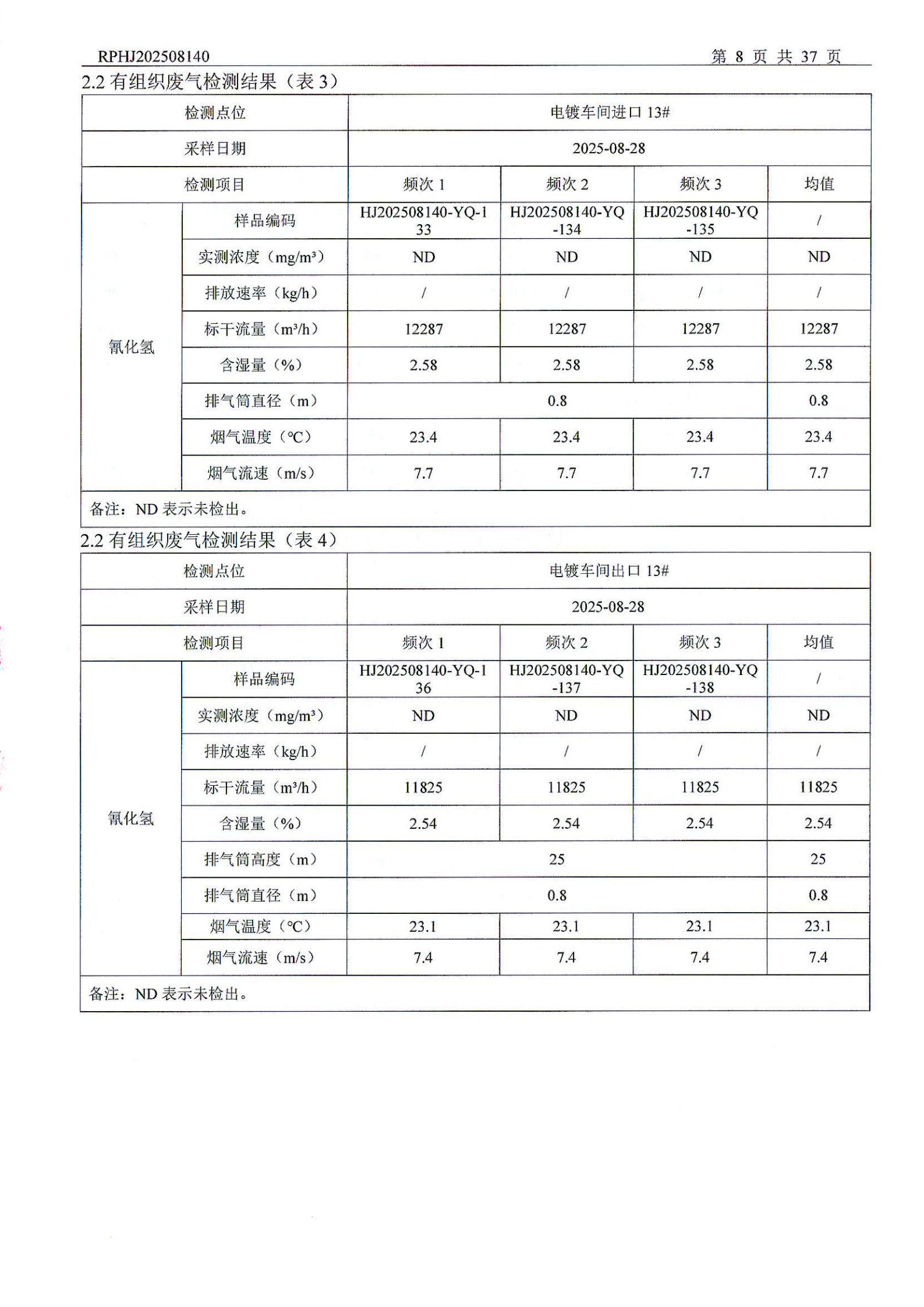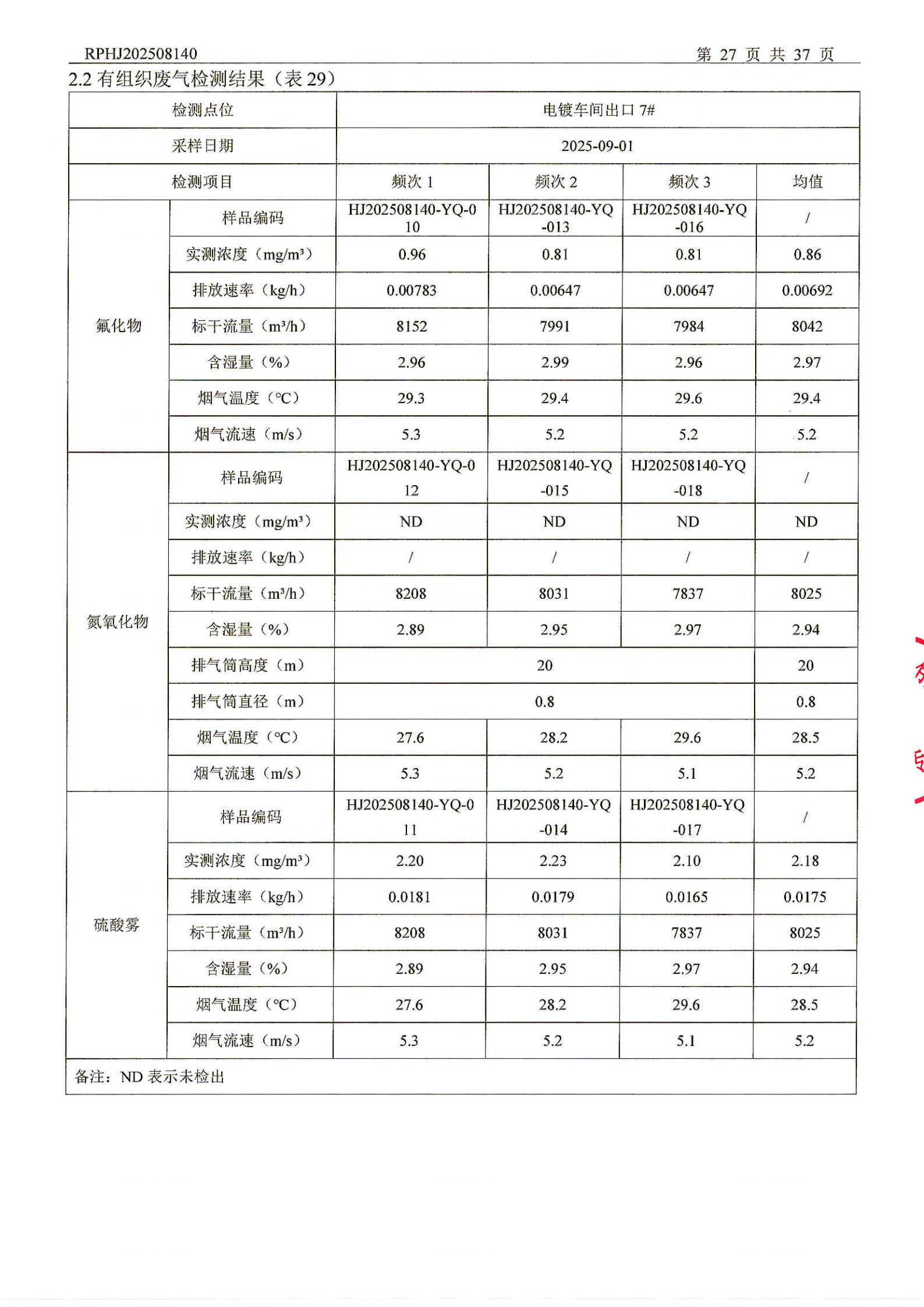 山东泰开电器机构有限公司废气检测