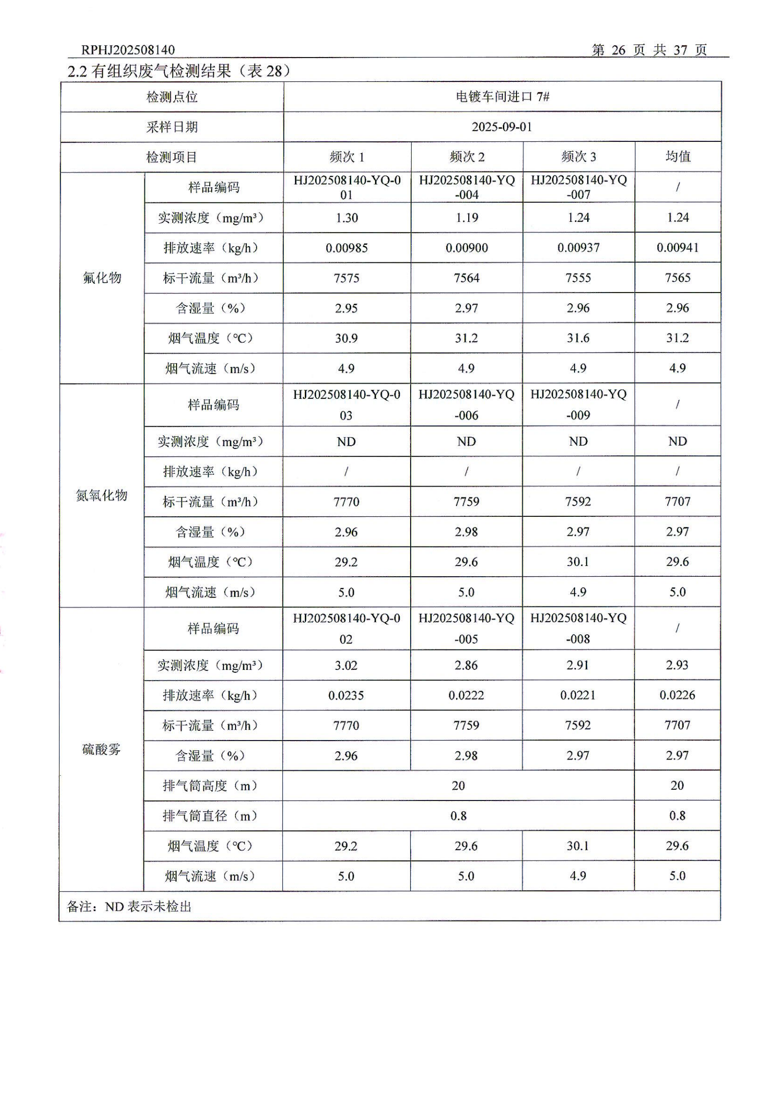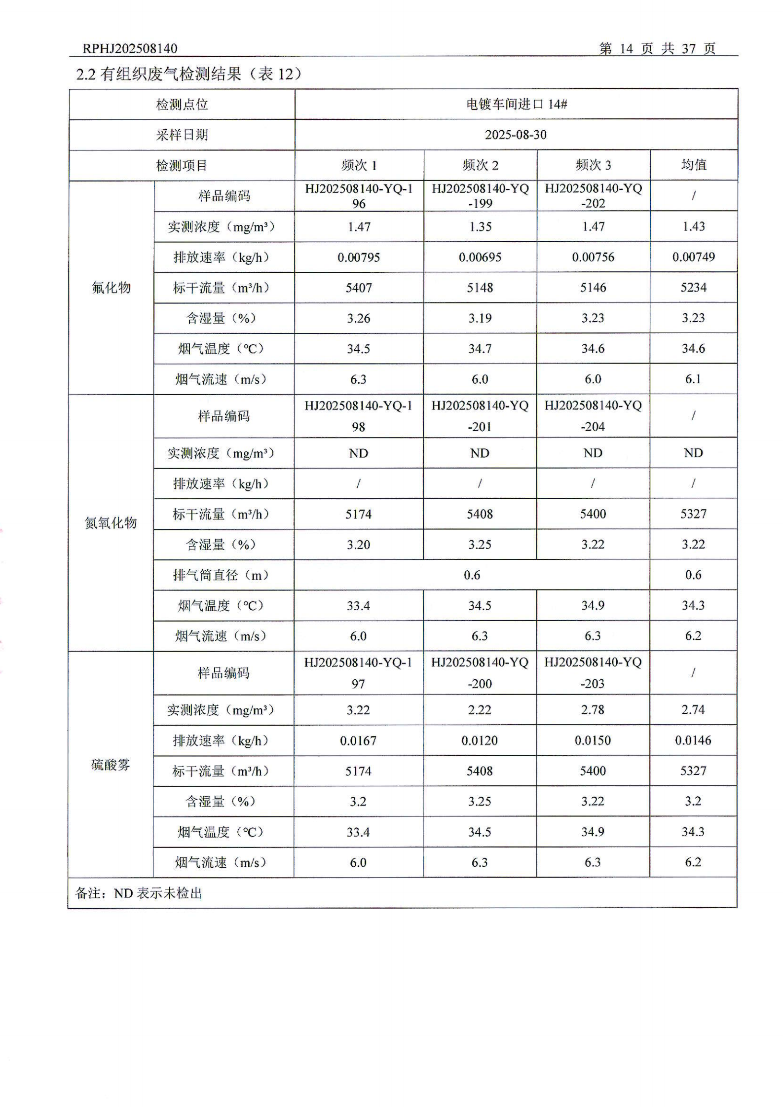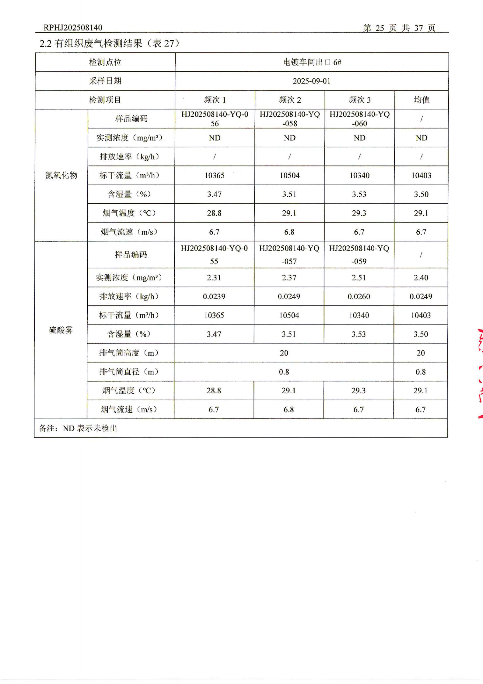山东泰开电器机构有限公司废气检测